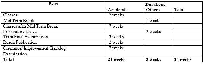 Examination will be held on term basis. Time allotted for the Examination will be as follows: